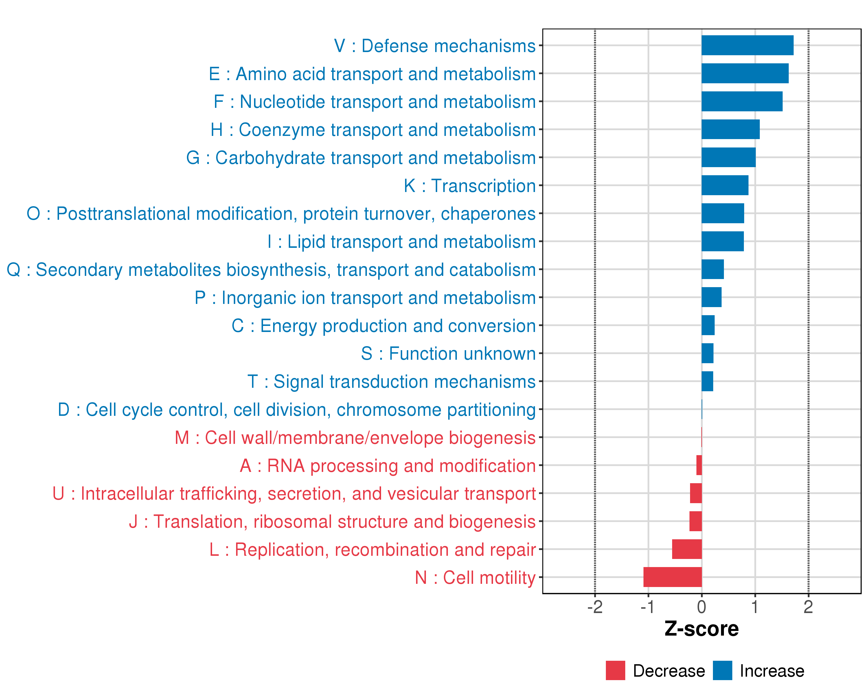 Enrichment profiles of COGs