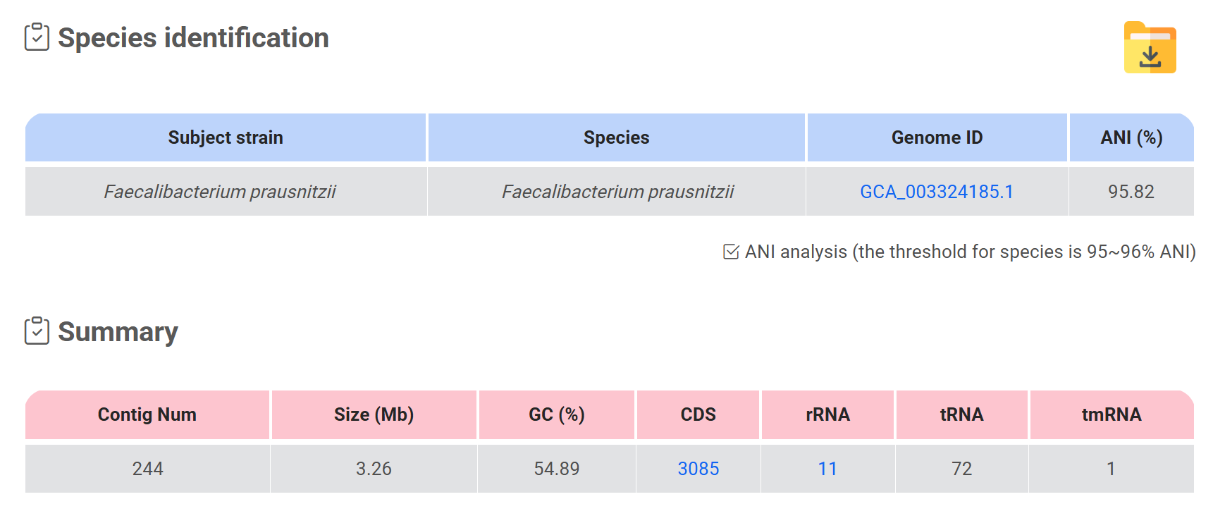 | Average nucleotide identity (ANI) | https://github.com/chjp/ANI | - |