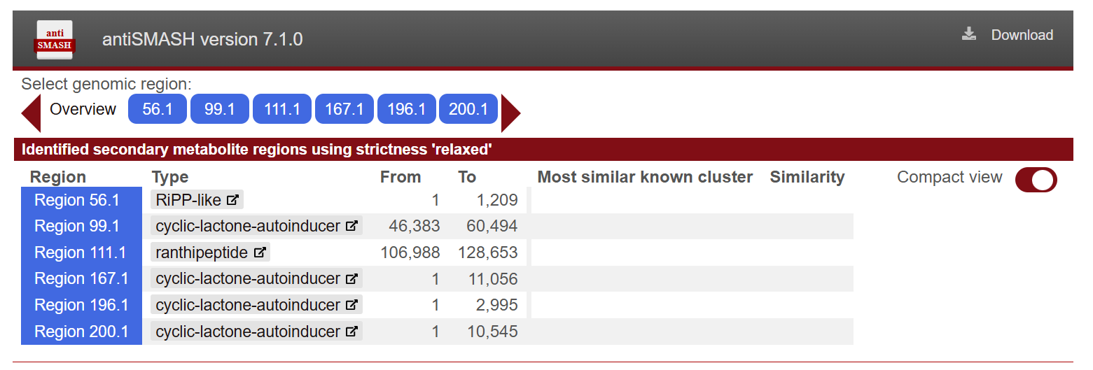 | Secondary metabolite gene clusters | antiSMASH v6.0.0 | (June 2022 release) |