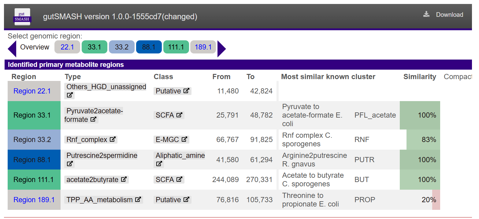 | Primary metabolite gene clusters | gutSMASH v1.0.0 | (Oct. 2020 release) |