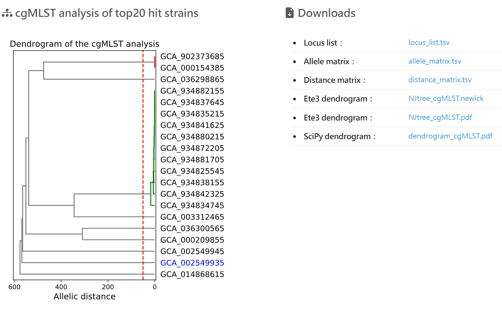 cgMLST analysis of top20 hit strains