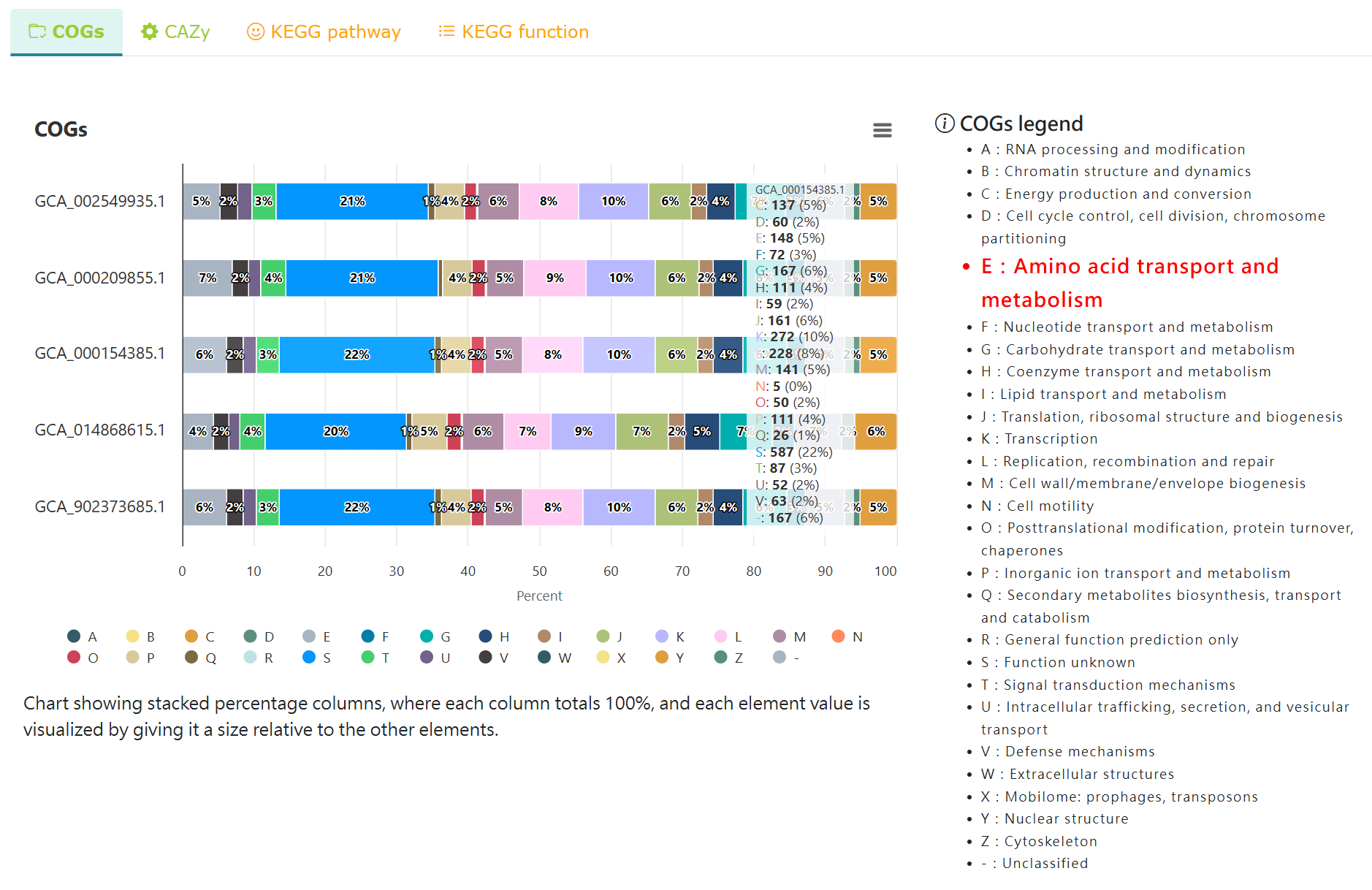 Comparative COGs analysis of the selected strains