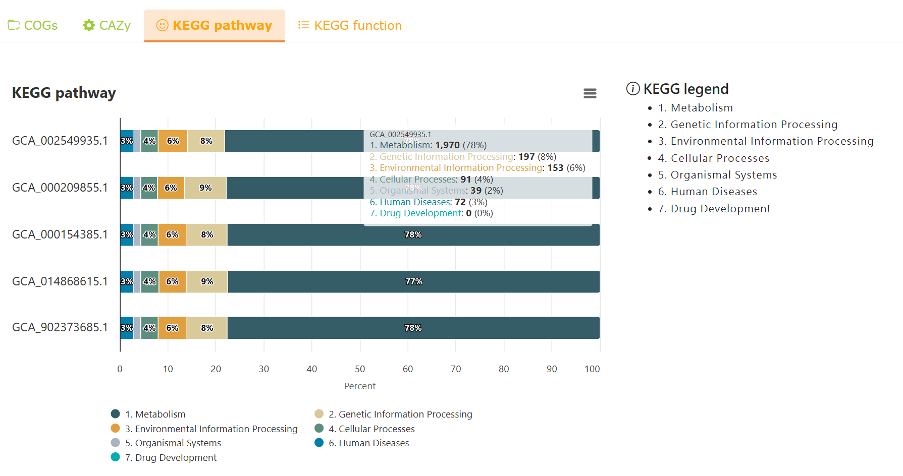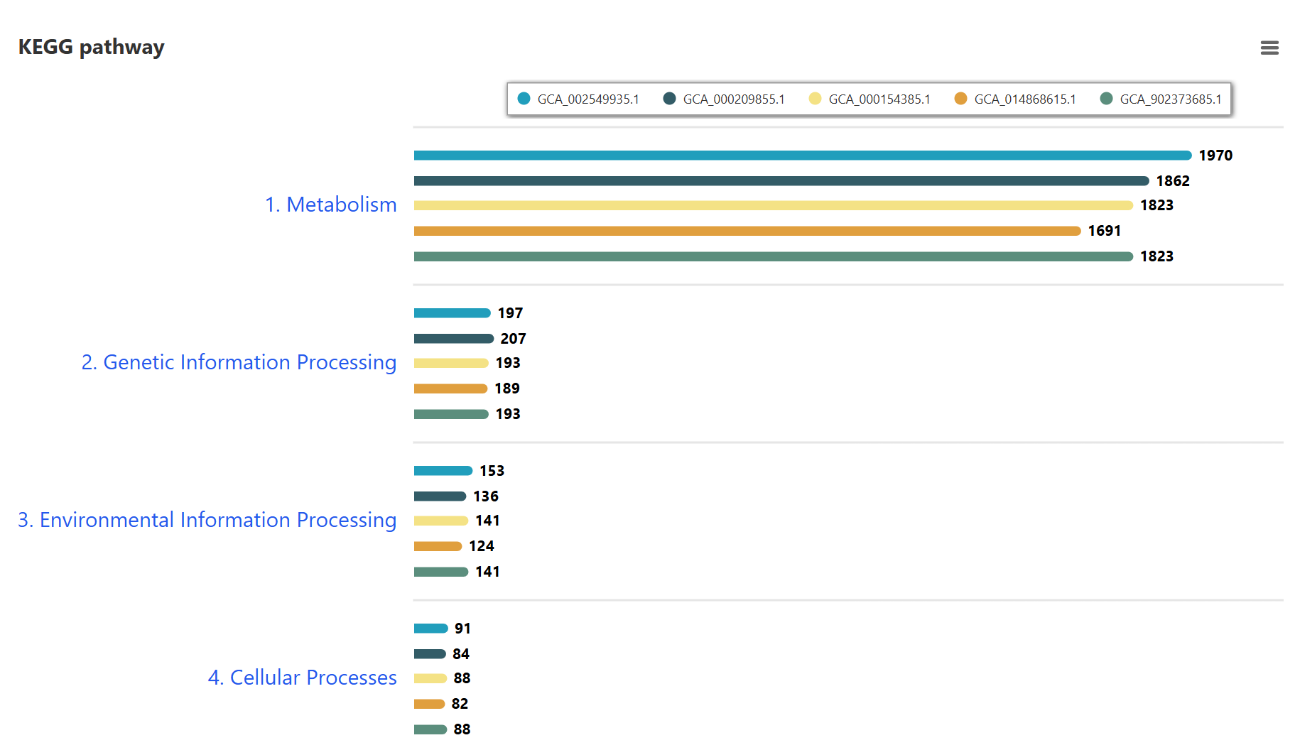 Comparative KEGG pathway analysis of the selected strains