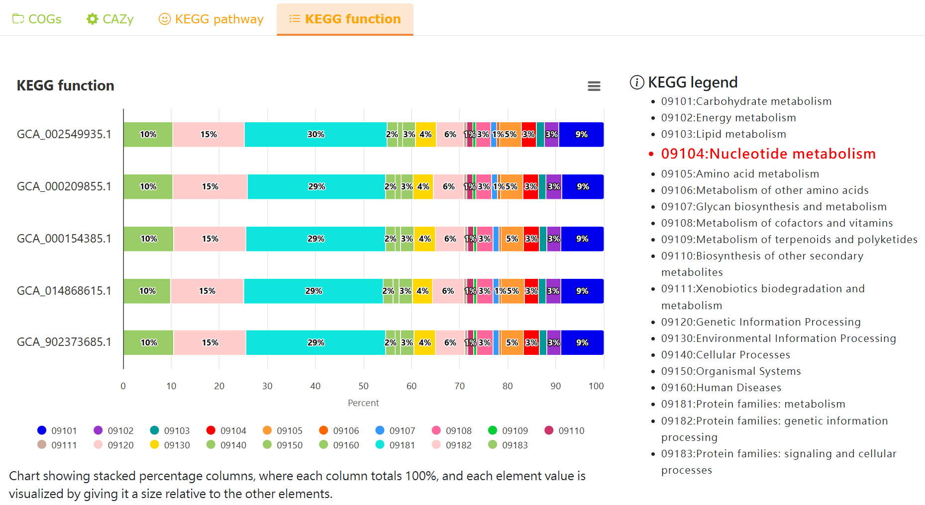 Comparative KEGG function analysis of the selected strains